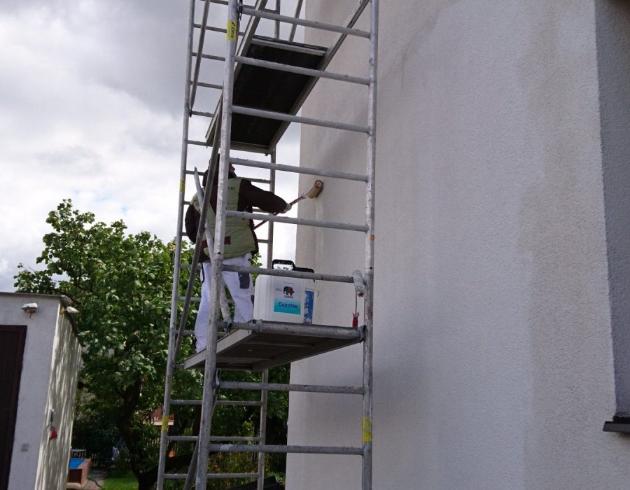 Kompletní technologie sanačního systému CAPAROL za použití likvidace řas přípravkem CAPATOX a silikonové fasádní barvy AMPHISILAN PLUS.