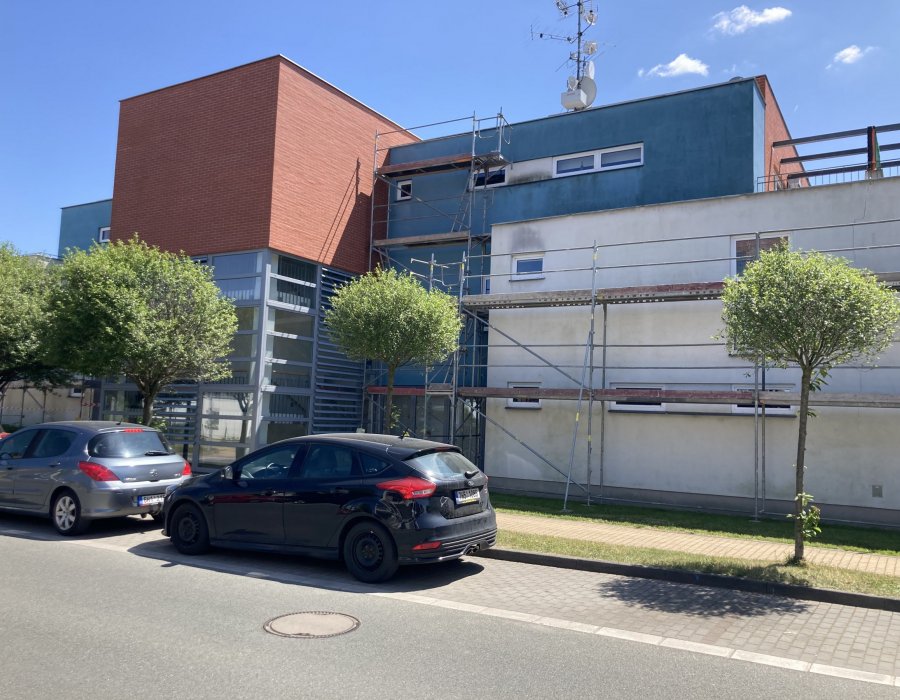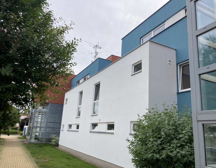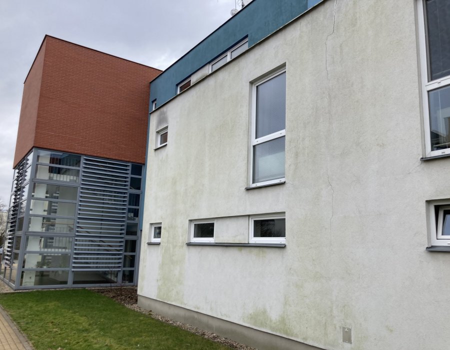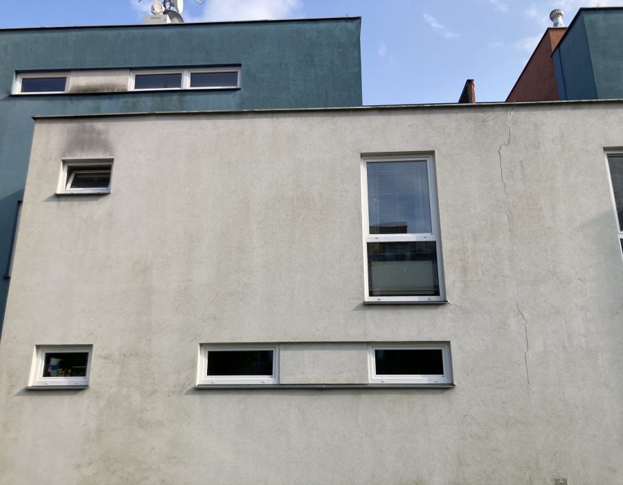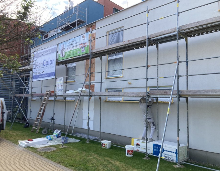 Oprava a sanace fasády bytového domu v Hradci KrálovéKompletní technologie sanačního systému CAPAROL CLEAN CONCEPT Premium za použití likvidace biologického napadení přípravkem CAPATOX a silikonové fasádní barvy s nanočásticemi THERMOSAN PLUS.