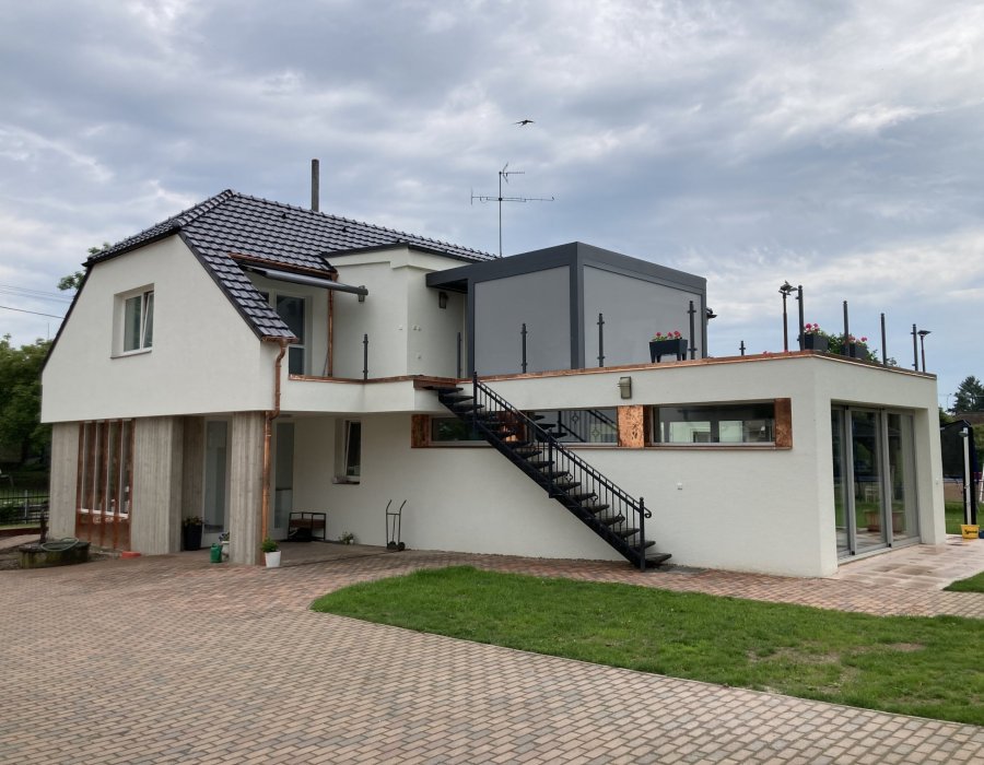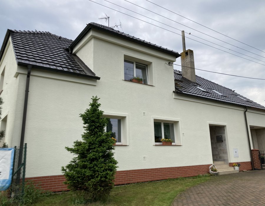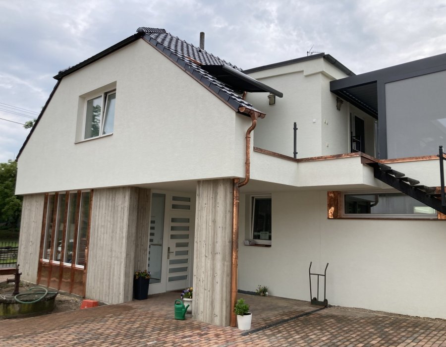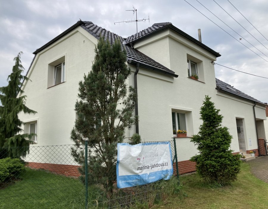 Oprava a sanace fasády rodinného domu v Novém MěstěKompletní technologie sanačního systému CAPAROL CLEAN CONCEPT Premium za použití likvidace biologického napadení přípravkem CAPATOX a silikonové fasádní barvy s nanočásticemi THERMOSAN PLUS.